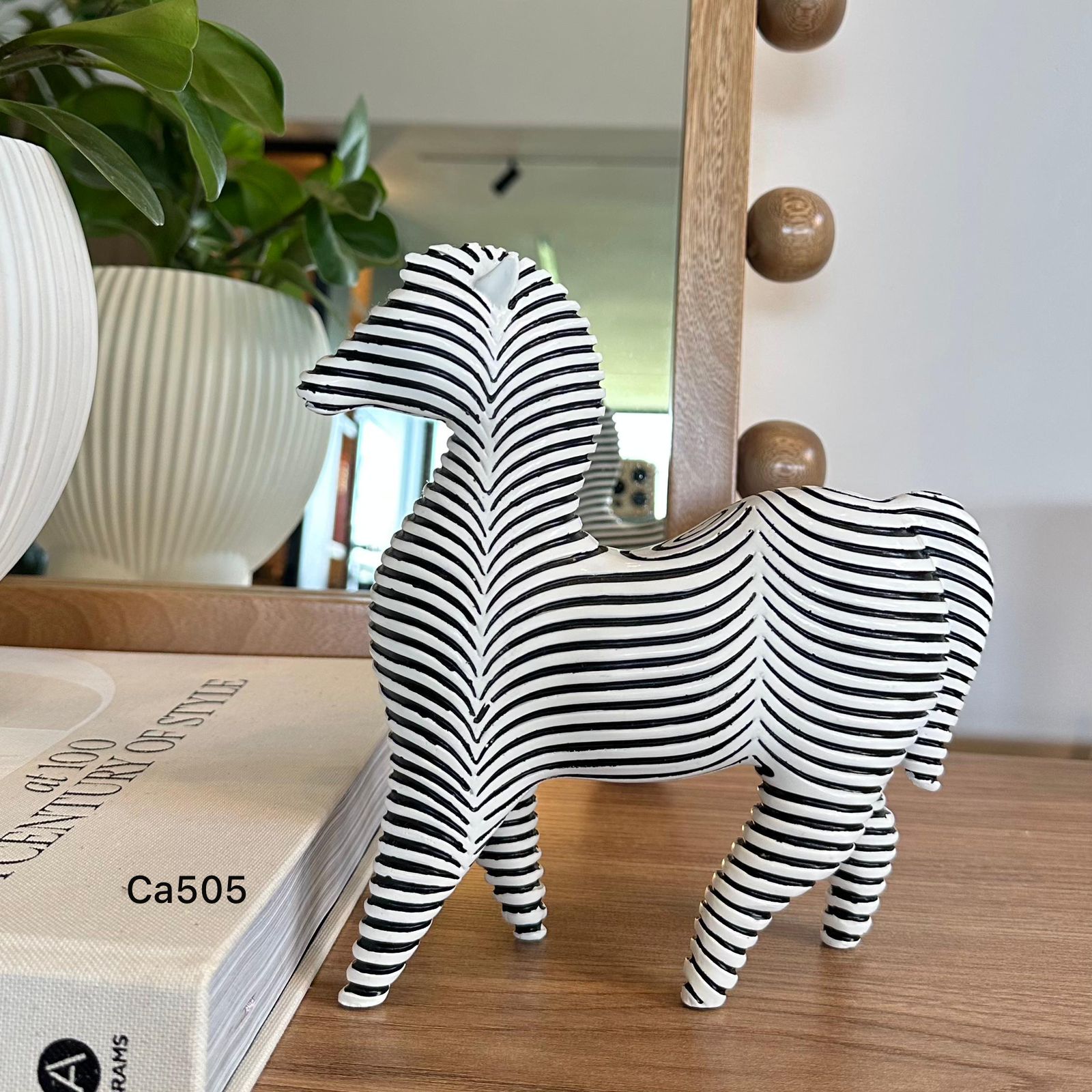 Articulo decorativo cebra blanco y negro resina 20cm* 6cm* 20,5cm