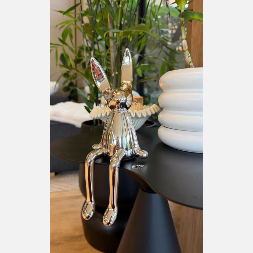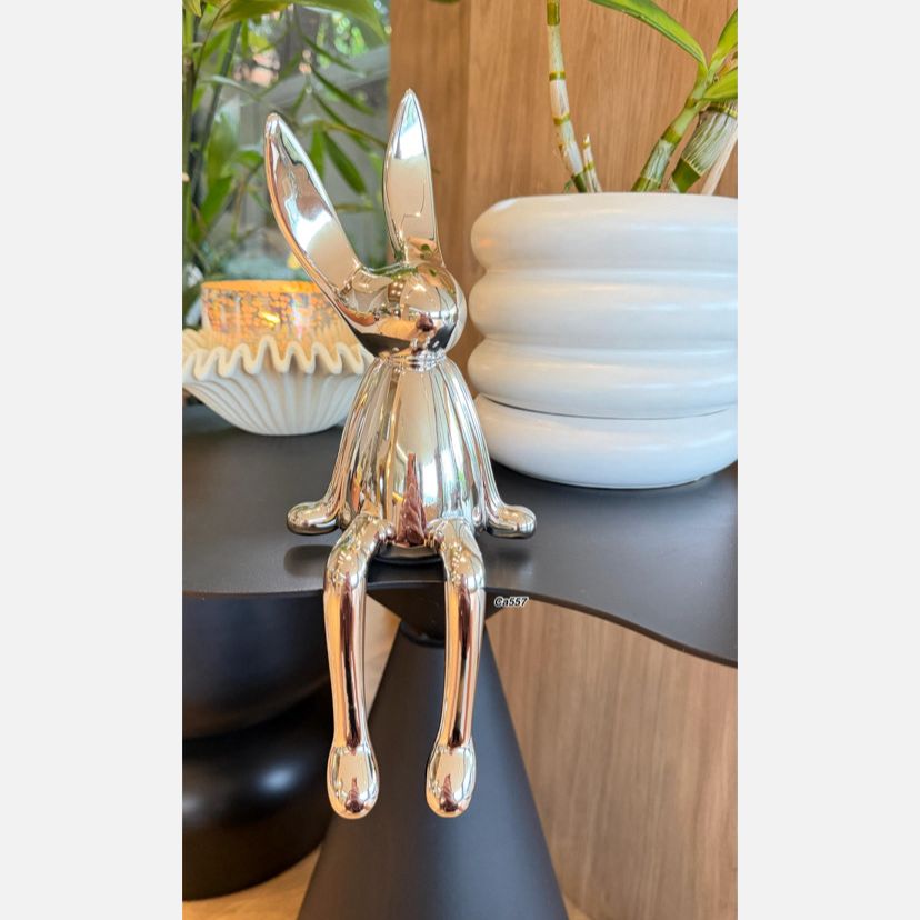 Articulo decorativo conejo plateado mediano 10cm* 10cm* 28cm
