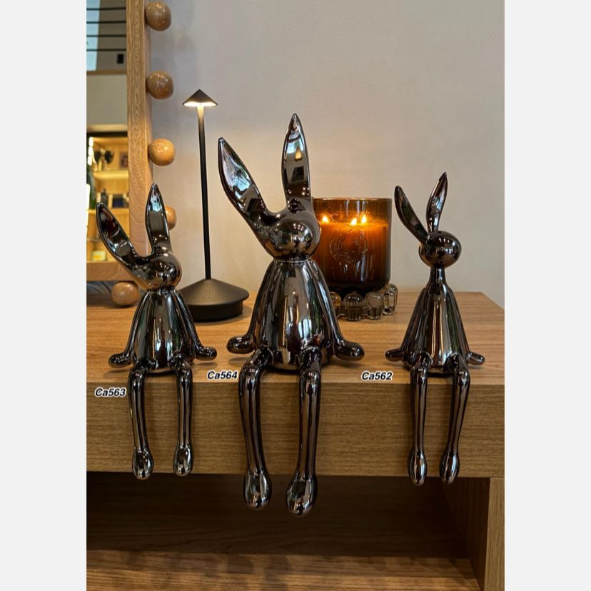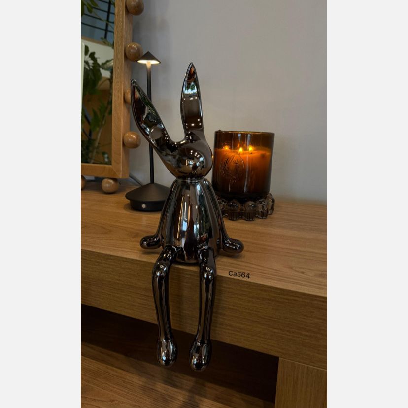 Articulo decorativo conejo plateado oscuro grande 14cm* 12cm* 36cm