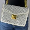 Bolso blanco apliques plateados detalle cadena dorada 20cm* 17cm* 5cm 3038# C-B