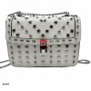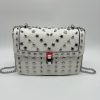 Bolso blanco apliques y cadena plateado 24cm* 9cm* 18cm C – 23196-A
