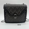 Bolso negro apliques y cadena plomo 20cm* 7cm* 16cm C- 23195