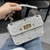 Bolso plateado apliques brillantes detalles cadena dorada 24cm* 16cm 2235 C-B