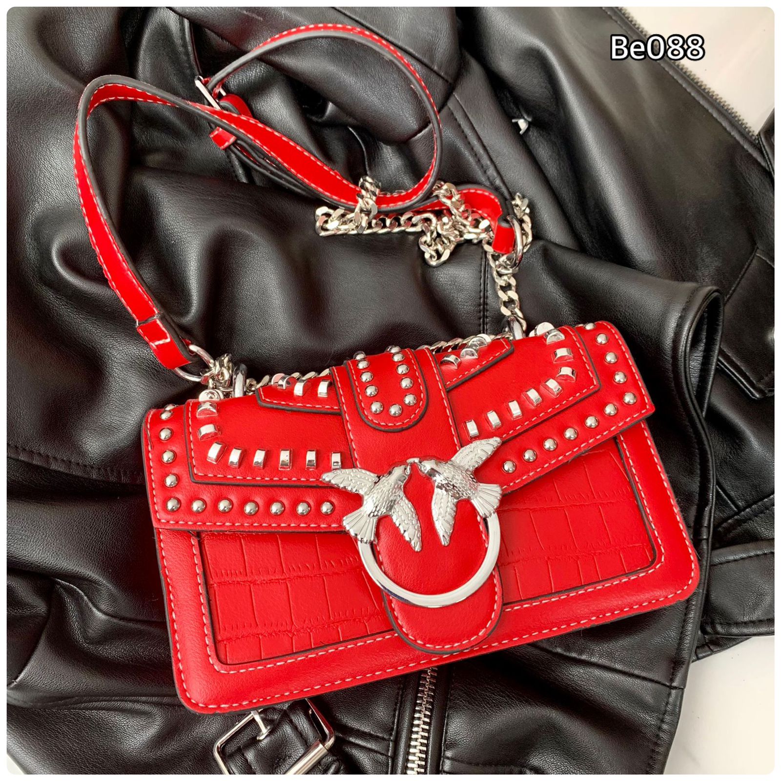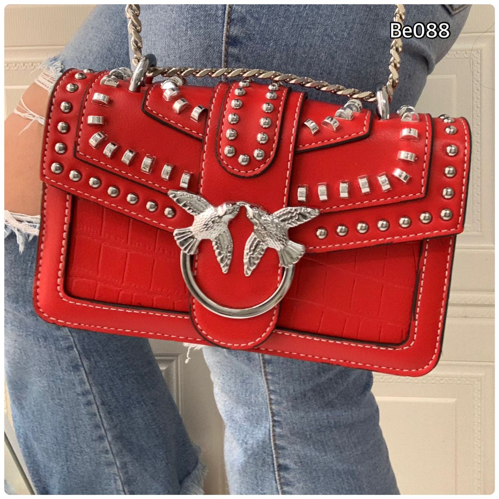 Bolso rojo apliques plateados 21cm*12cm 2101