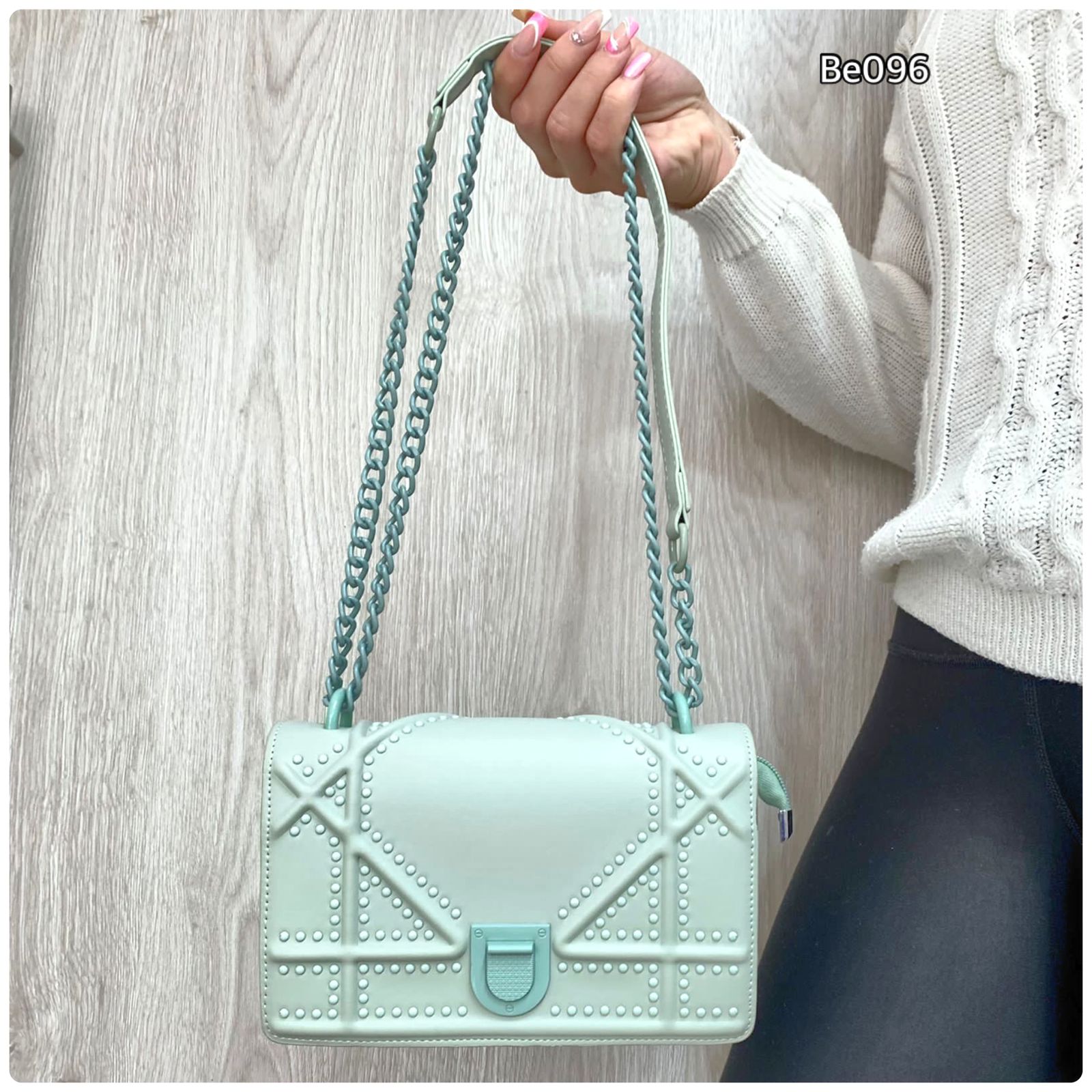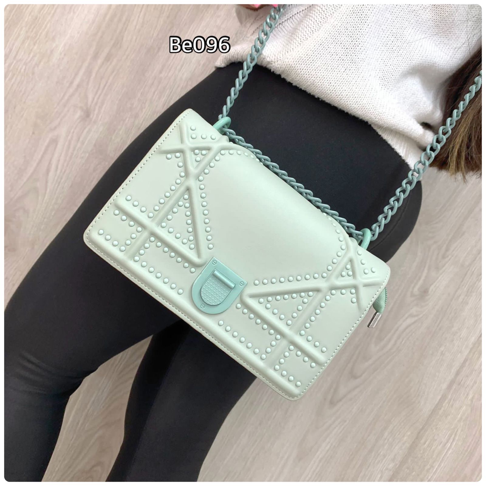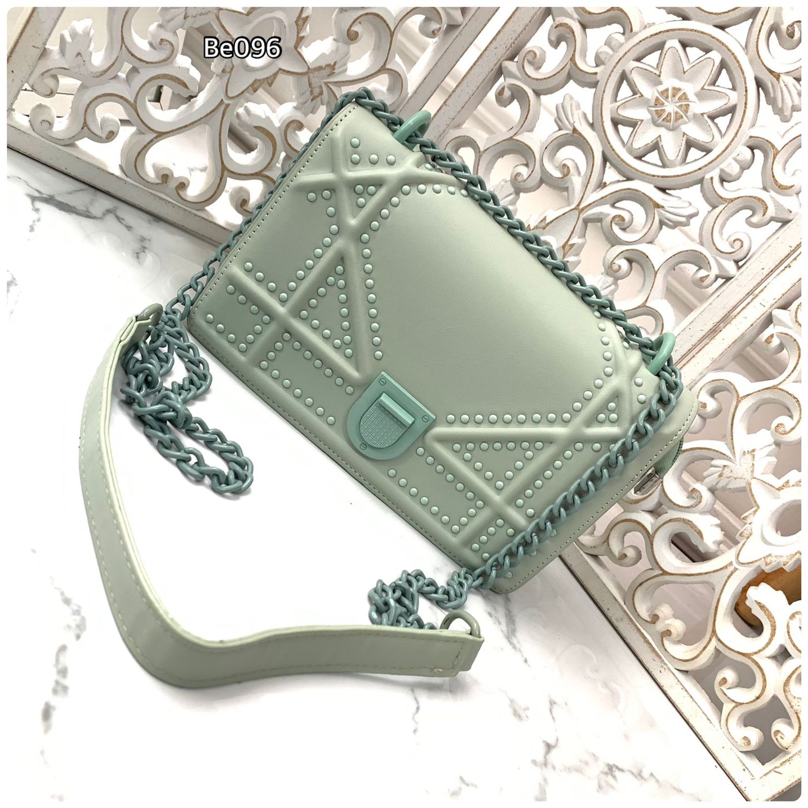 Bolso verde apliques cadena 21cm* 13cm 9159