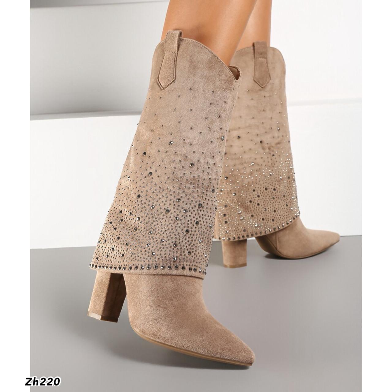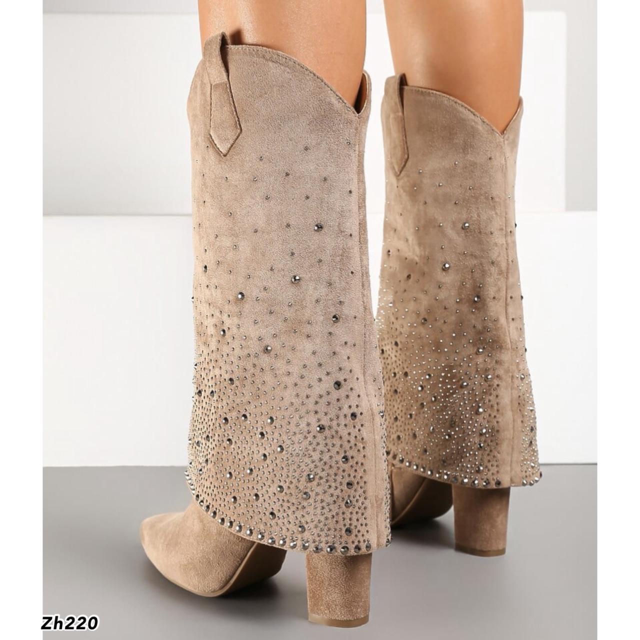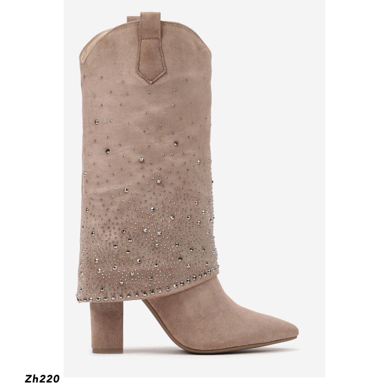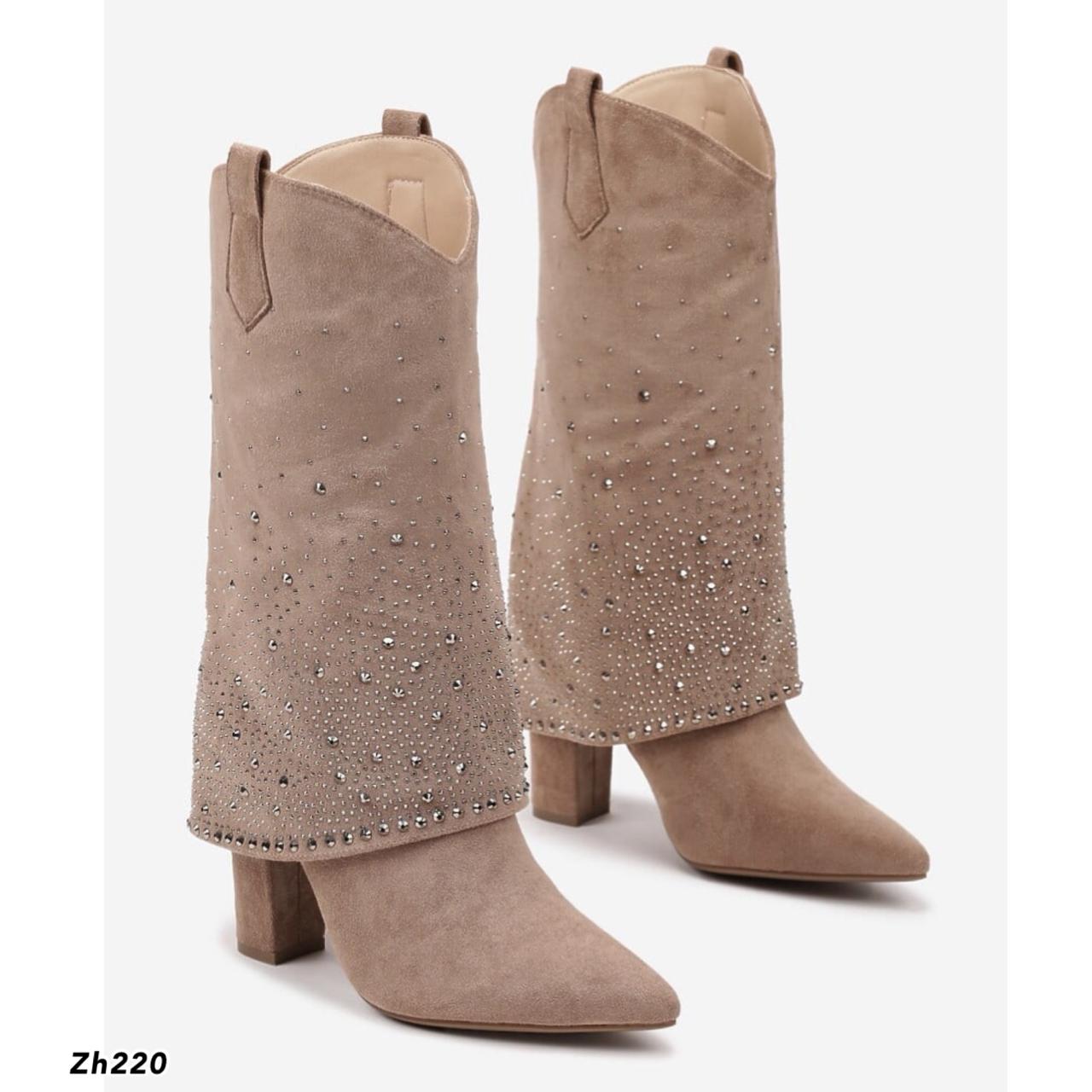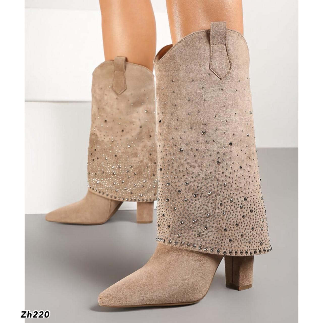 Bota beige doblez apliques brillantes tacon 10cm MS1569 C-92