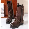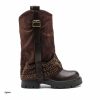 Bota cafe doblez apliques plateado suela 4cm 5078 C-34