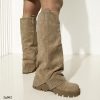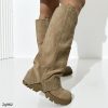 Bota caña alta beige doblez apliques plateado suela 5cm A9992 C-32