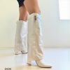 Bota caña alta blanco doblez detalle plateado tacon 10cm 255-003