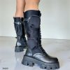Bota caña alta negro detalle bolsito suela 6cm 255-066