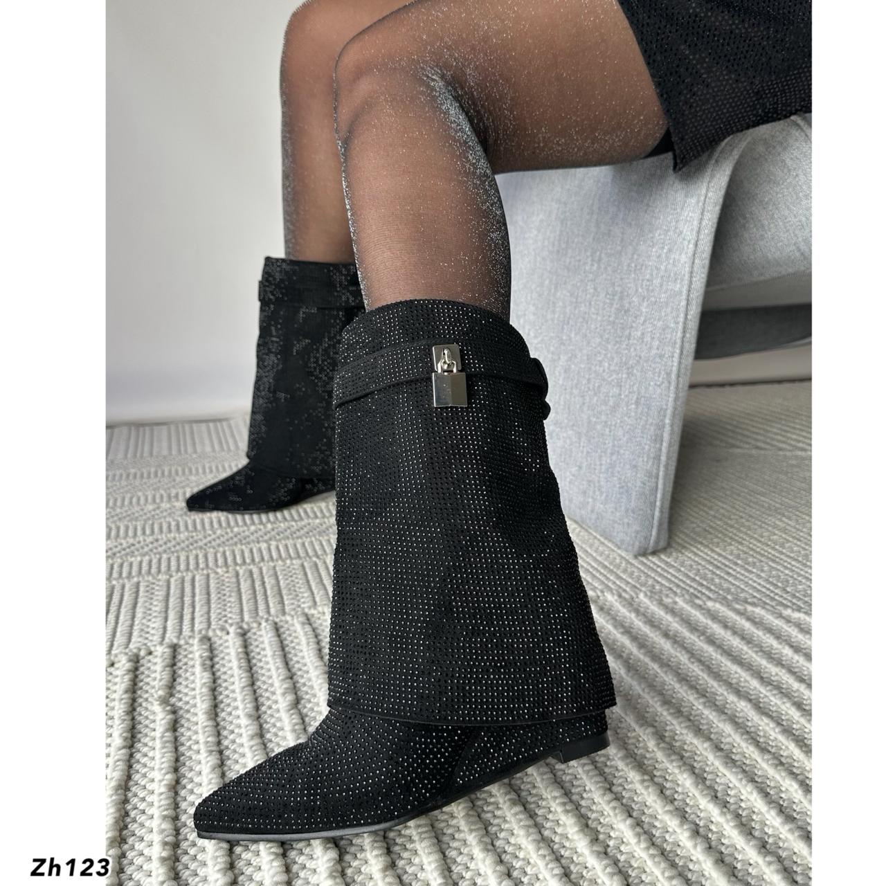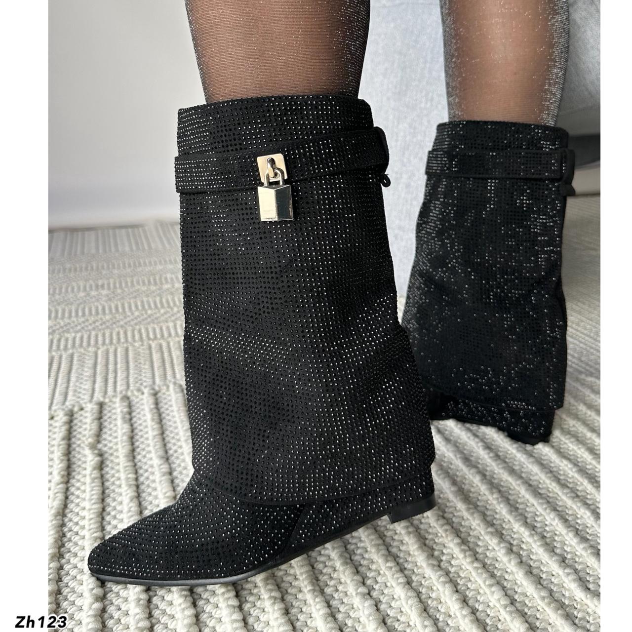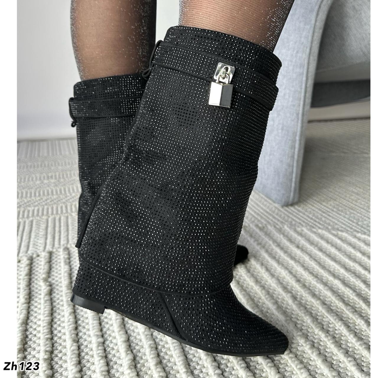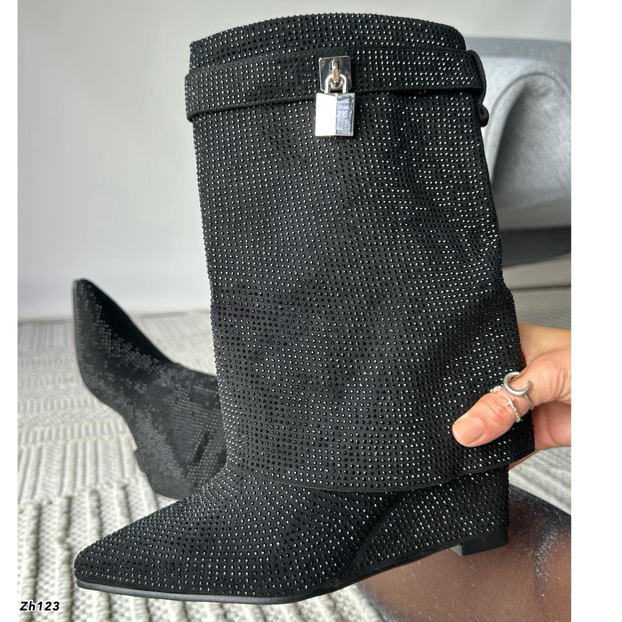 Sé el primero en opinar “Bota negro doblez apliques brillantes tacon corrido 8cm YL85-30 C-51”