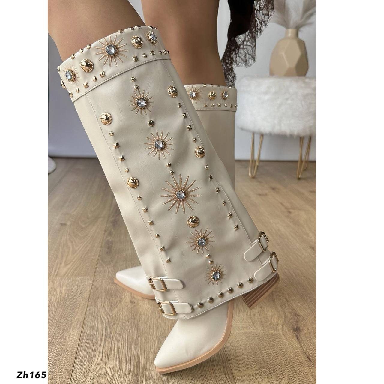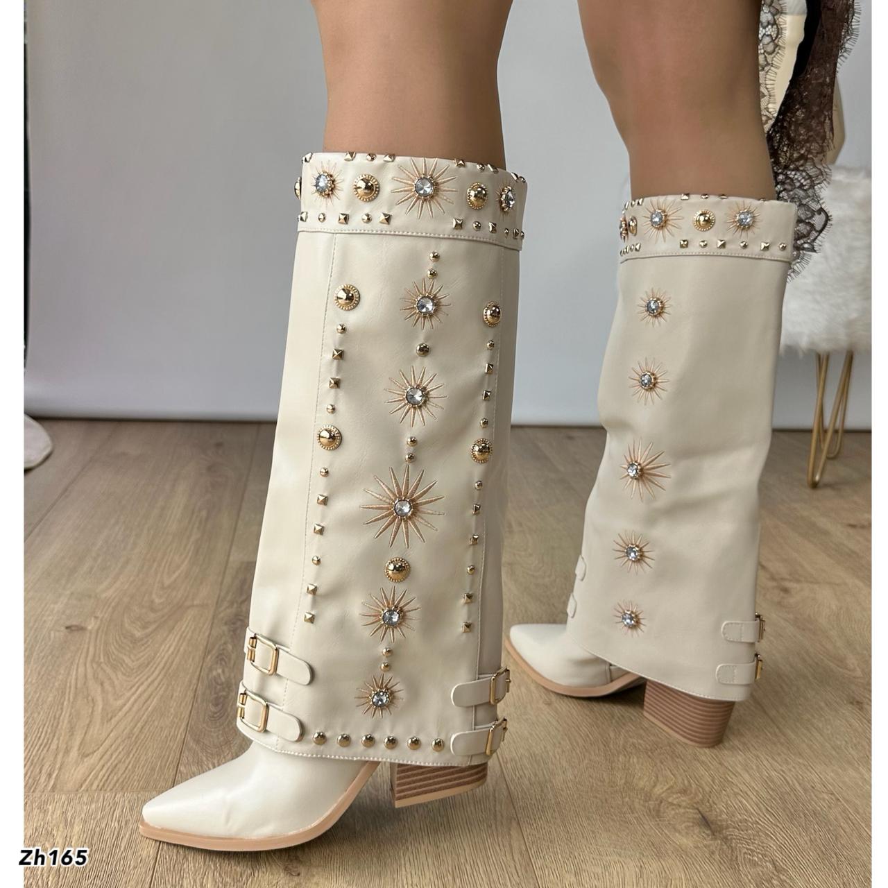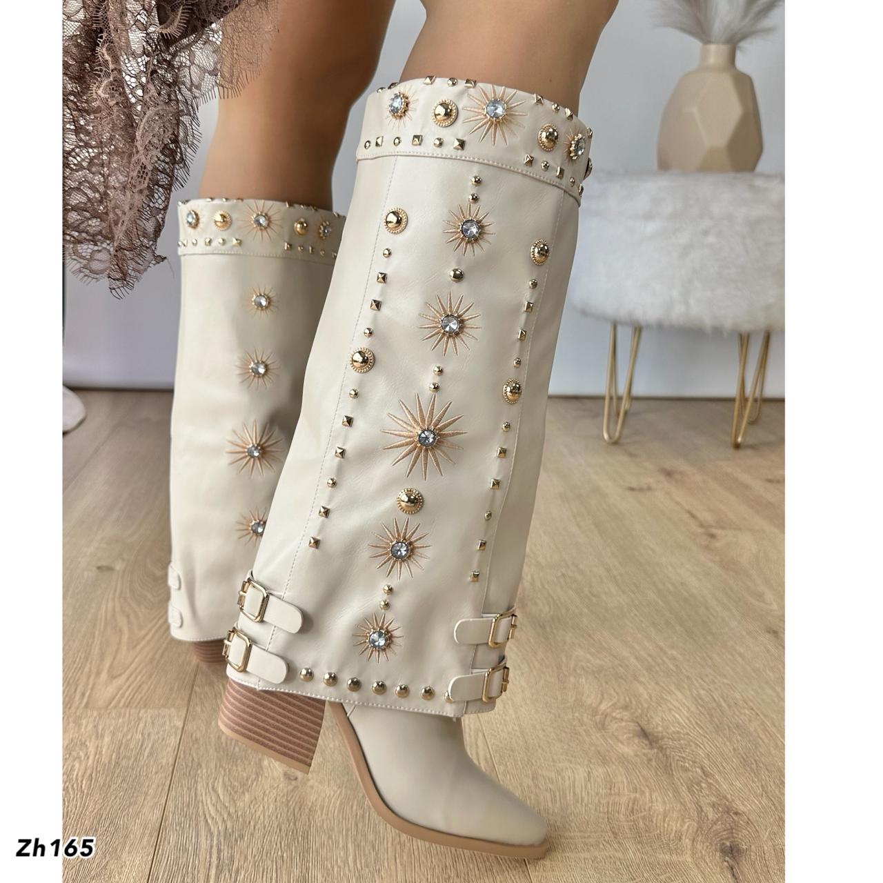 Sé el primero en opinar “Bota texana beige doblez apliques dorado brillante tacon 8cm 255-117”