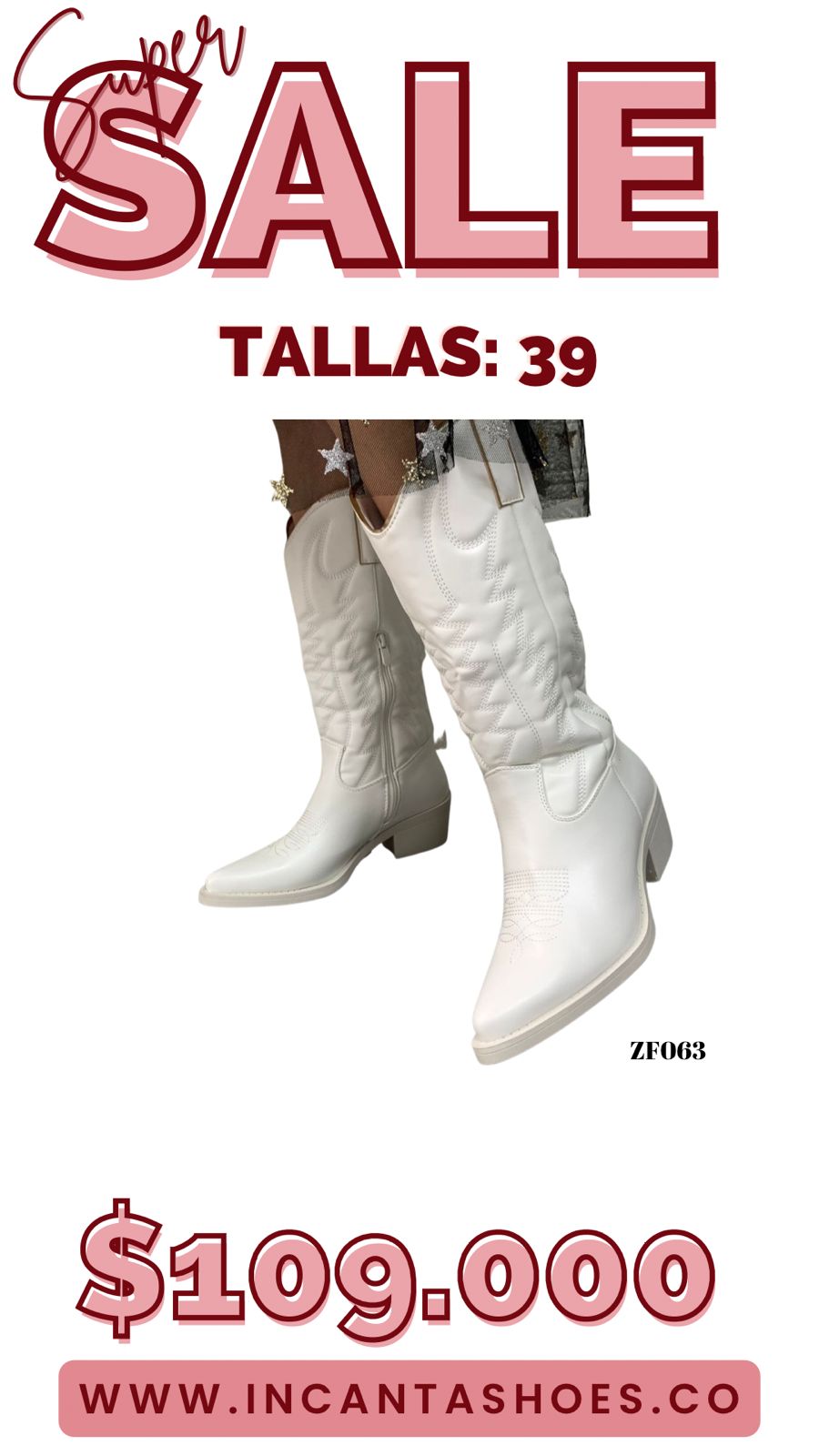 Bota texana blanca tacon 5cm U9A-X23689-6 C27