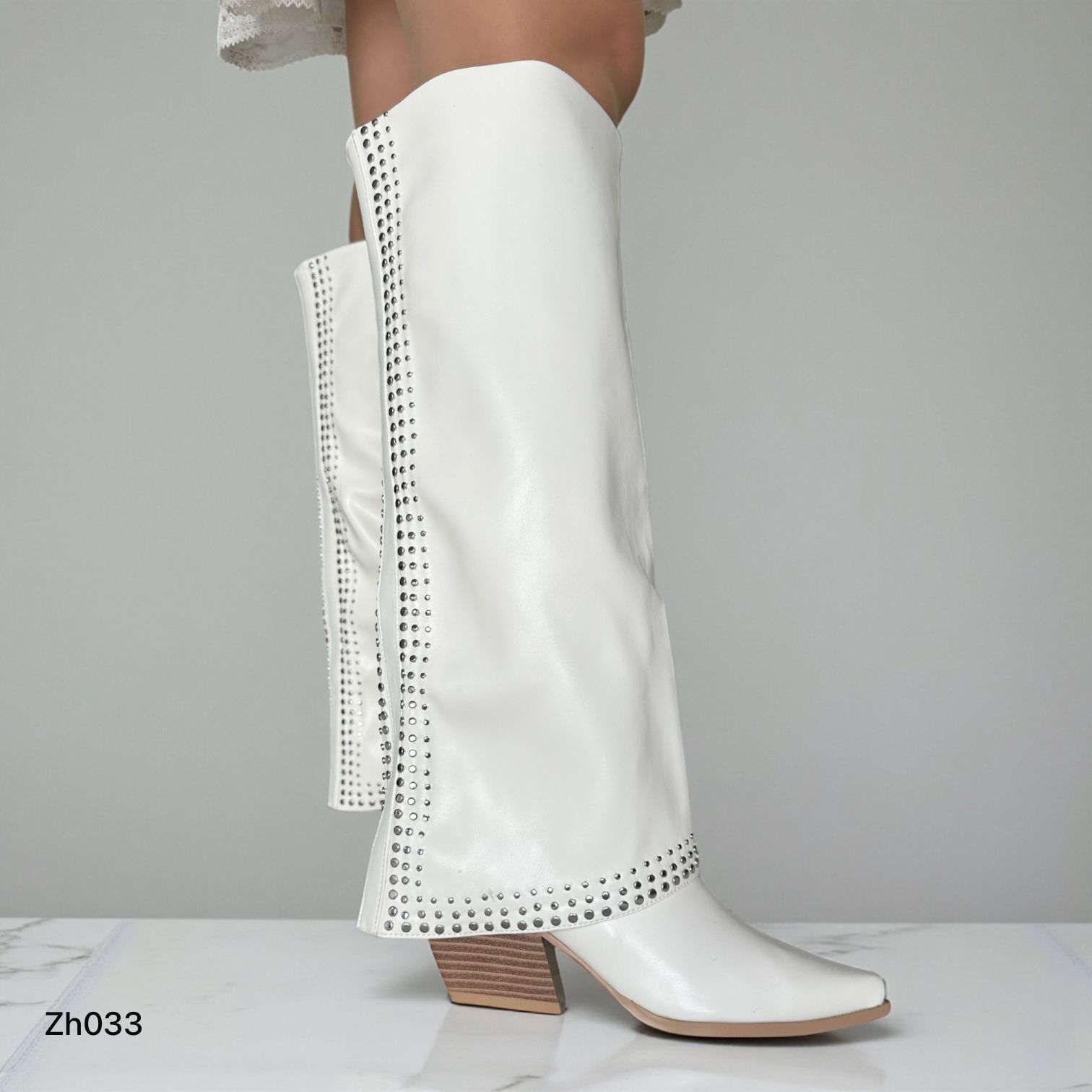 Bota texana blanco doblez apliques plateado tacon 7cm 255-024
