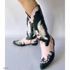 Bota texana negro detalles rosado tacon 3cm BOT012C C-1