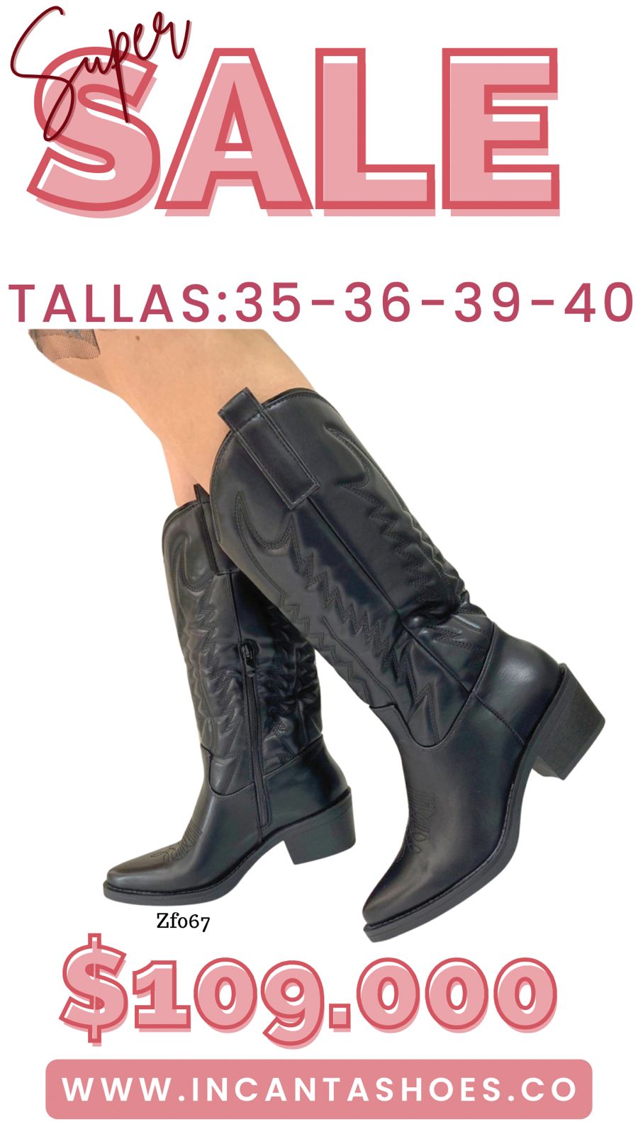 Bota texana negra tacon 5cm U9A-X23689-6 C27