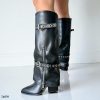 Bota texana negro doblez detalle correas y cierre plateado tacon 9cm KF6 C-28