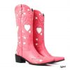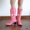 Bota texana rosado detalles blanco tacon 5cm BOT003C C-1