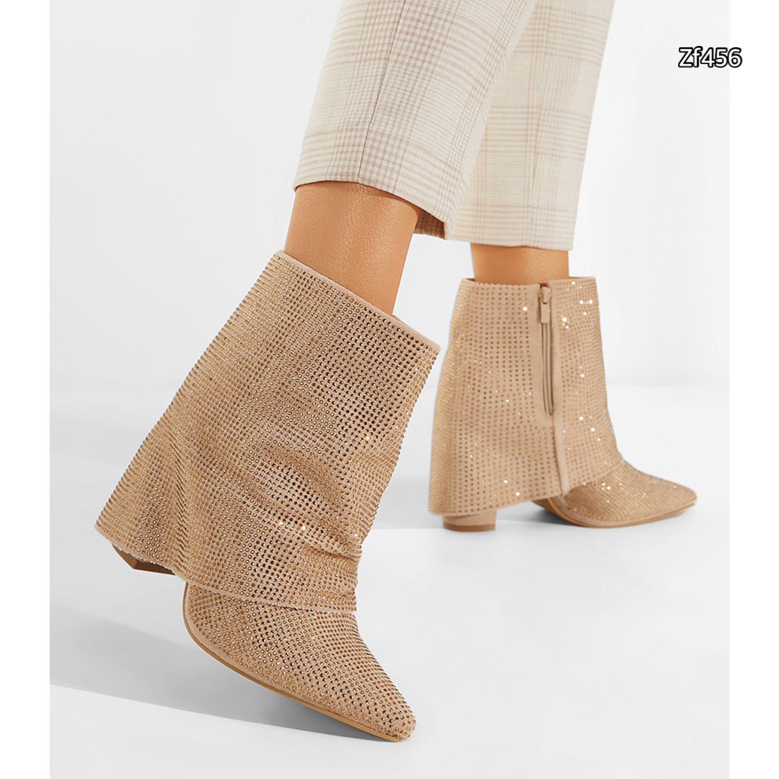 Sé el primero en opinar “Botin beige doblez apliques brillantes tacon 9cm 8653A C31”