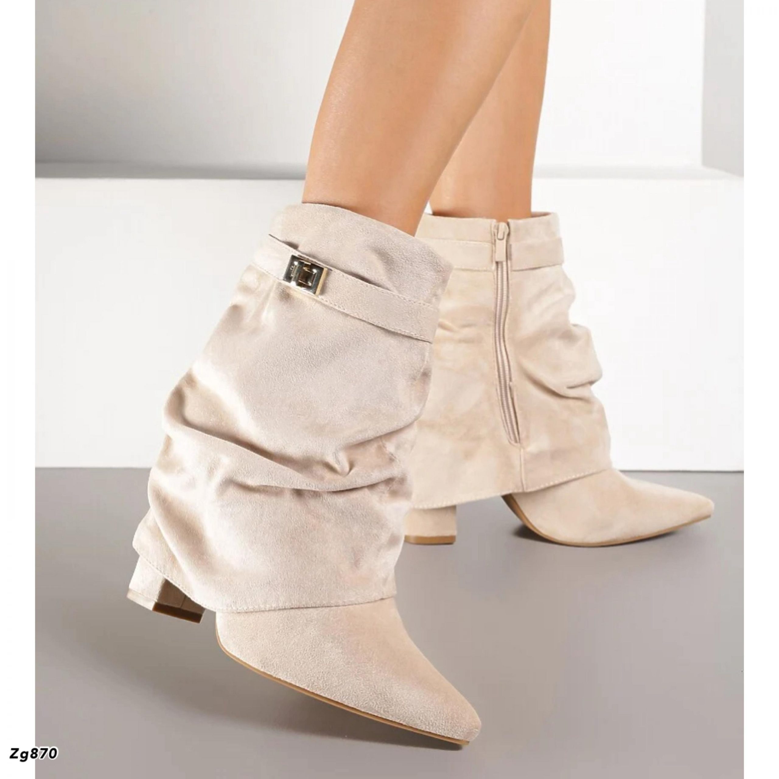 Botin beige doblez detalle dorado tacon 10cm 7666A C-18