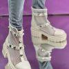 Botin blanco malla apliques dorado suela 5cm MS5036 C-53