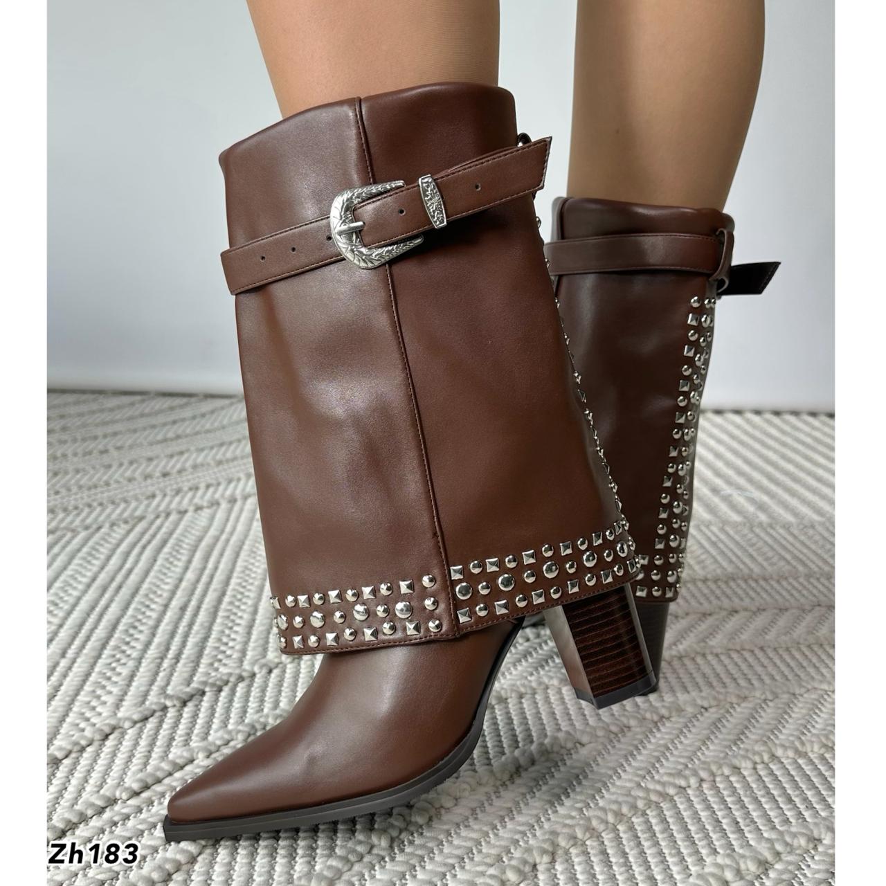 Botin café doblez apliques plateado tacon 9cm HX3077-C1072