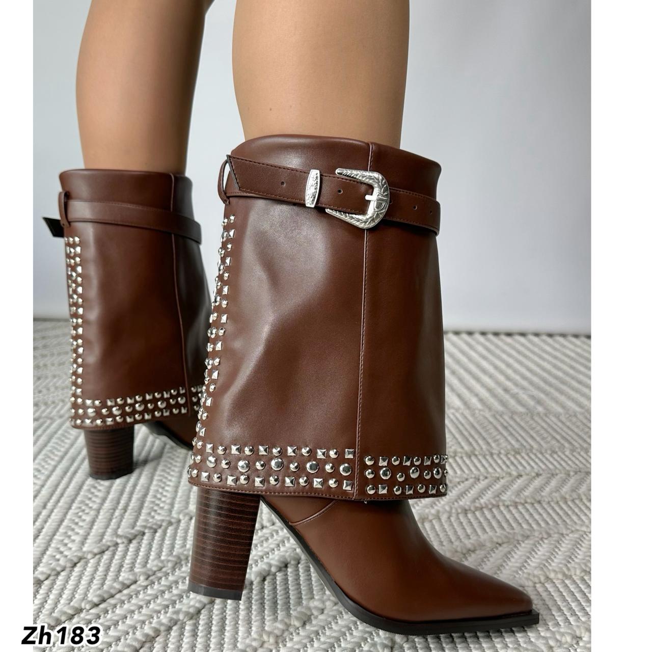 Sé el primero en opinar “Botin café doblez apliques plateado tacon 9cm HX3077-C1072”