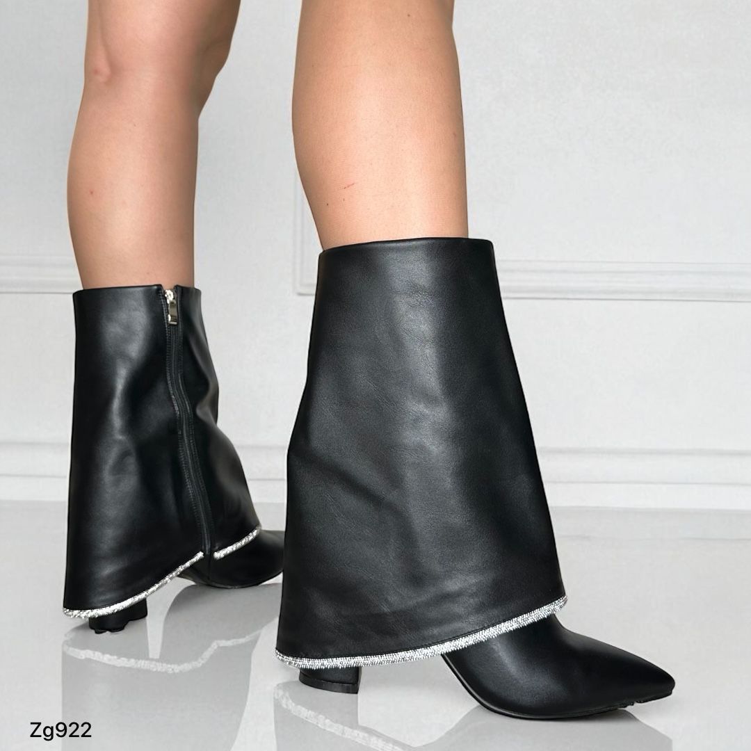 Botin negro doblez apliques brillantes tacon 8cm 255-021