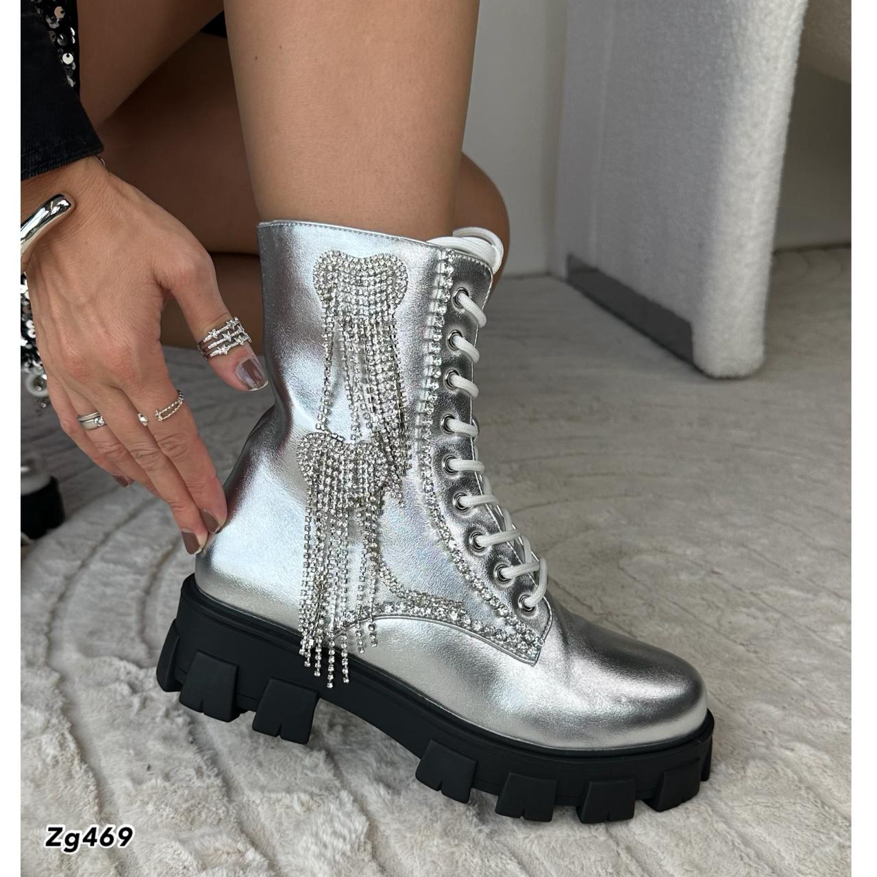 Botin plateado apliques brillantes suela 4cm BT08# C-1