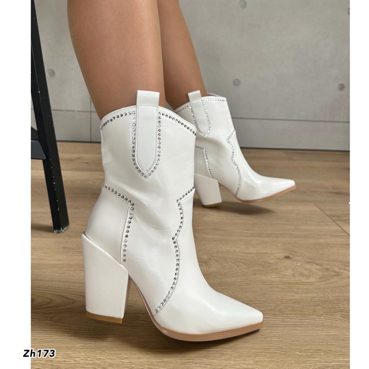 Botin texano blanco apliques plateado brillantes tacon 9cm 255-127