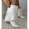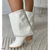 Botin texano blanco doblez apliques plateado tacon 7cm 255-042