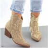 Botin texano cafe apliques brillantes tacon 7cm AA8A-AX83570-16 C-8