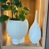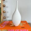 Jarron blanco mediano ovalado boquilla dlgada ceramica 8cm* 8cm* 25cm