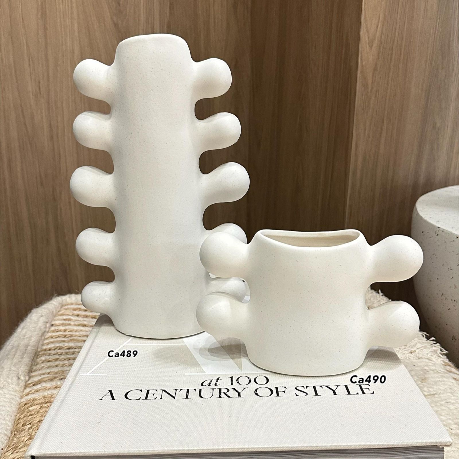 Jarron florero diseño cactus blanco grande 15,3cm* 6,6cm* 25cm