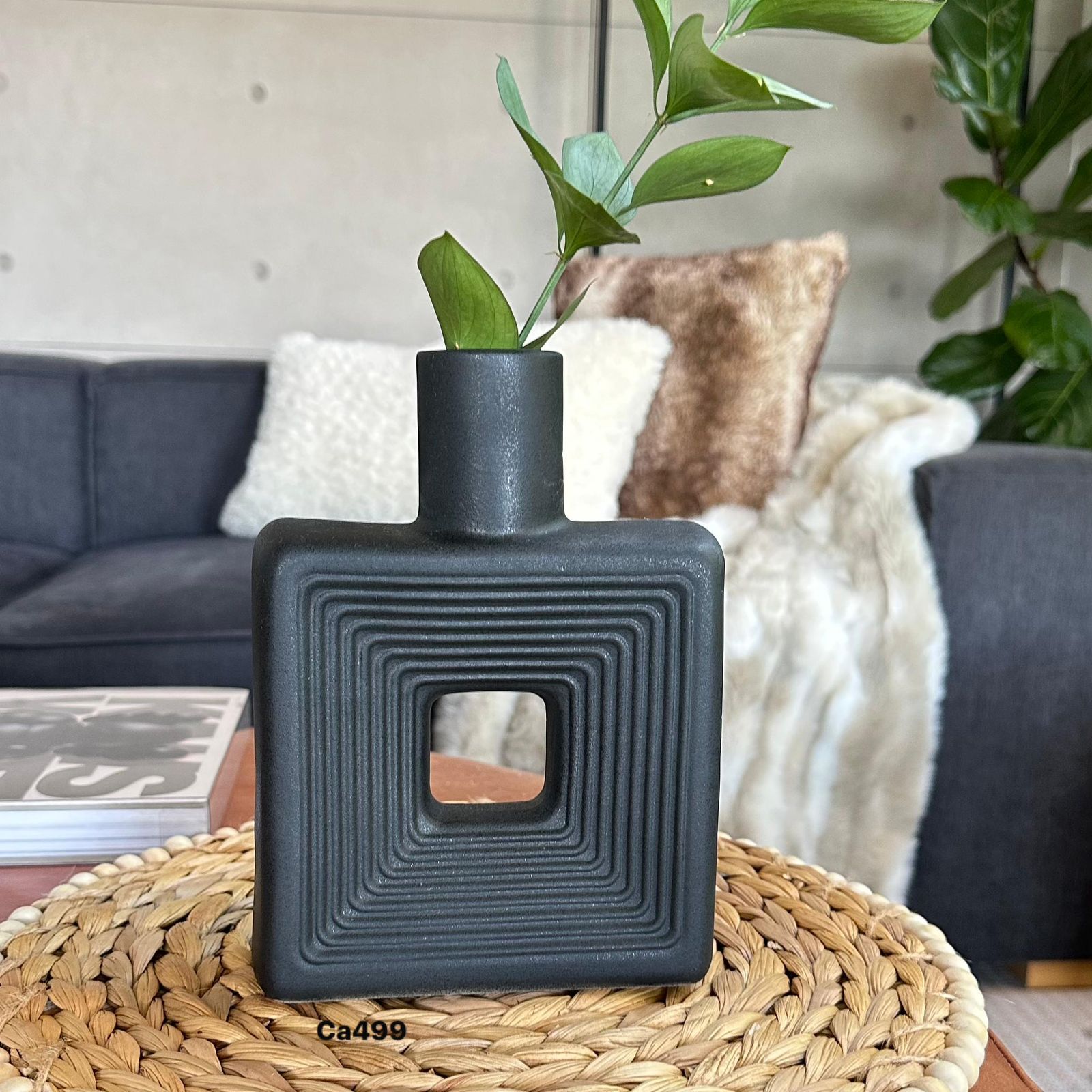 Jarron negro textura cuadrado ceramica pequeño 16cm* 21,5cm