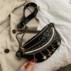 Riñonera negra detalle perlas cadenas doradas 26cm* 11cm BL04# C-B