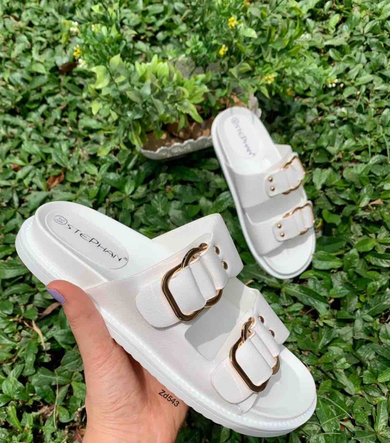 Sandalia Compra 53 P-1155 Blanca dos correas chapa dorada suela 2Cm