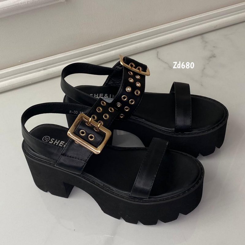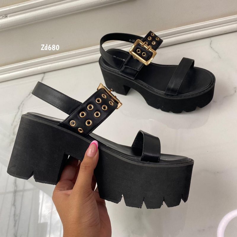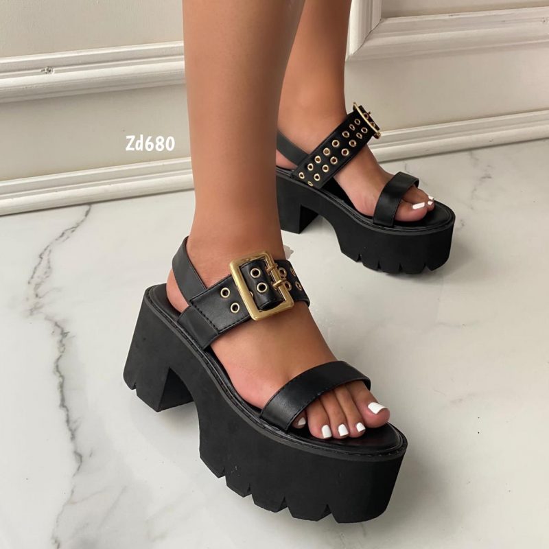Sandalia negra plataforma 2 correas taches dorados plataforma 5cm tacón 8cm M-30