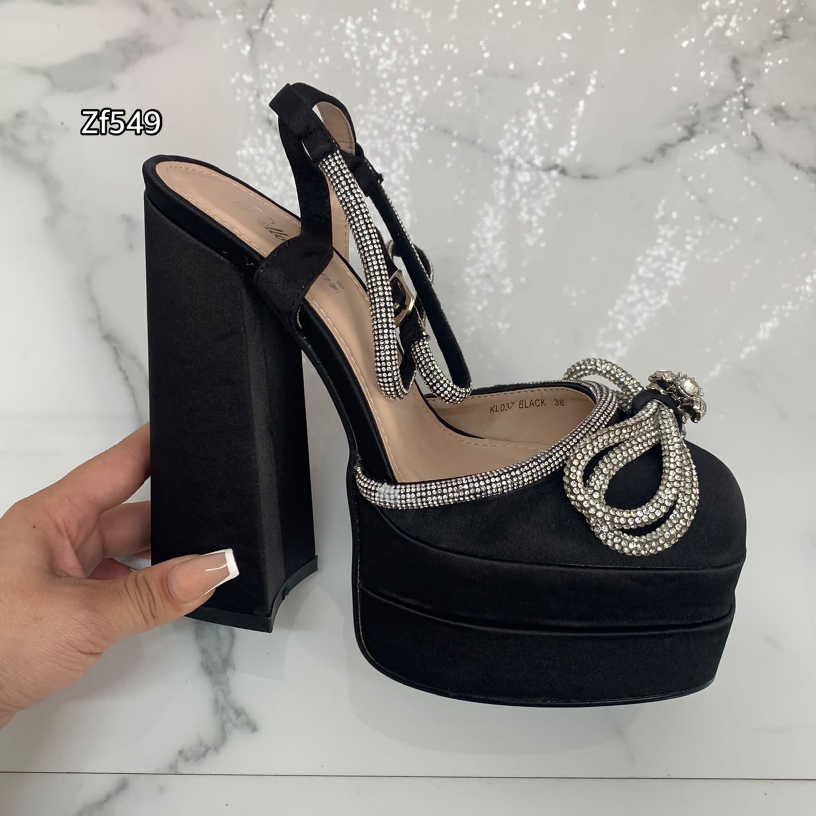 Sé el primero en opinar “Tacon negro apliques brillantes plataforma 5cm tacon 14cm KL037 C16”