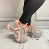 Tenis gris detalles rosado y malla aplique plateado suela plataforma 6cm 339 C-2