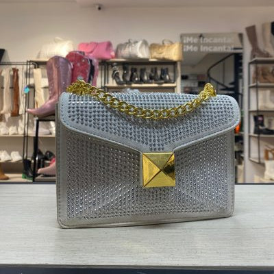Bolso blanco apliques plateados detalle cadena dorada 20cm* 17cm* 5cm 3038# C-B
