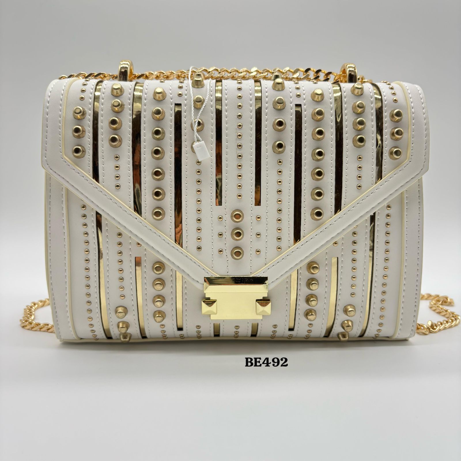 Bolso blanco detalles apliques dorado 24cm* 9cm* 17cm C- 23197