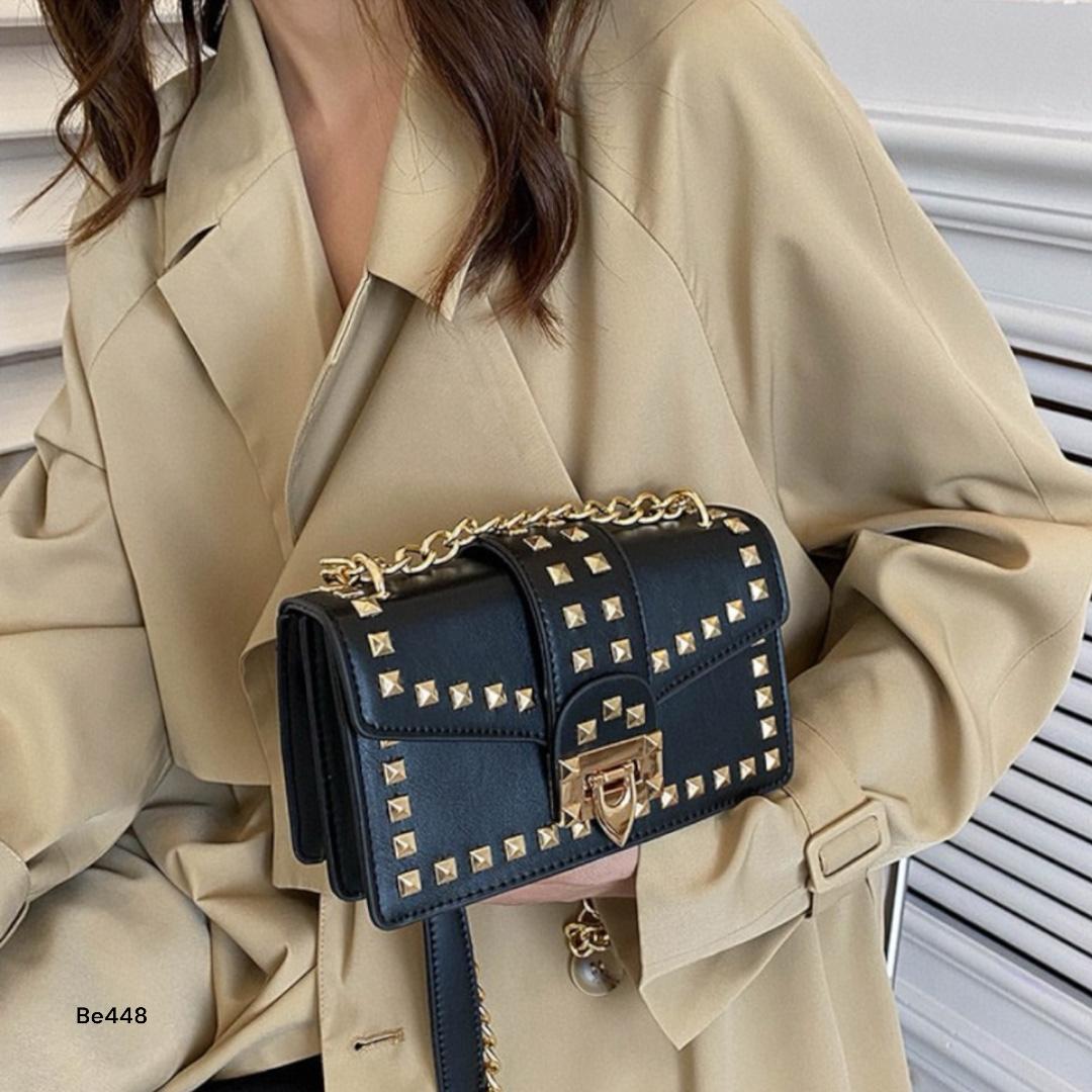 Bolso negro apliques cadena dorado 22cm* 15cm* 6cm 7010 C-B