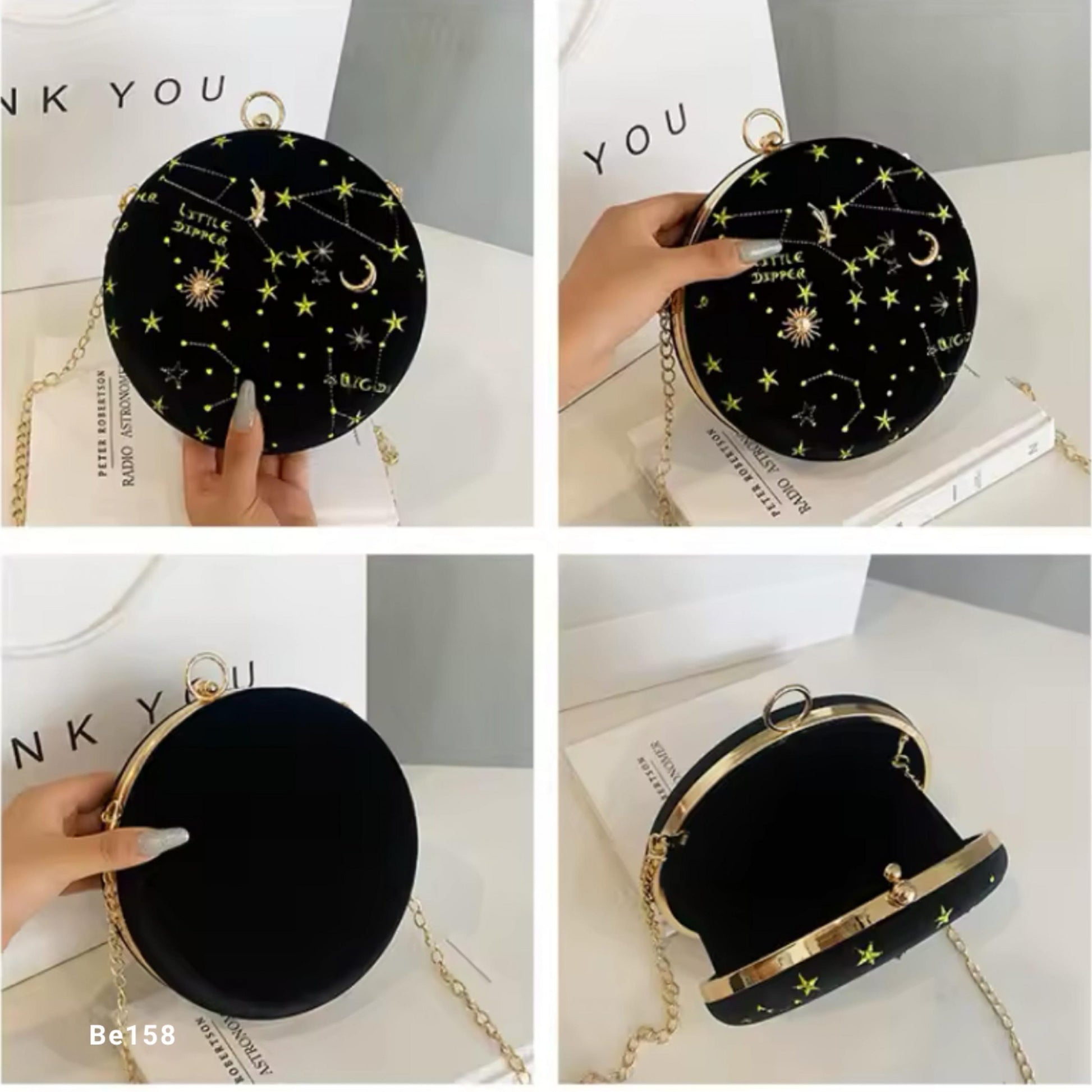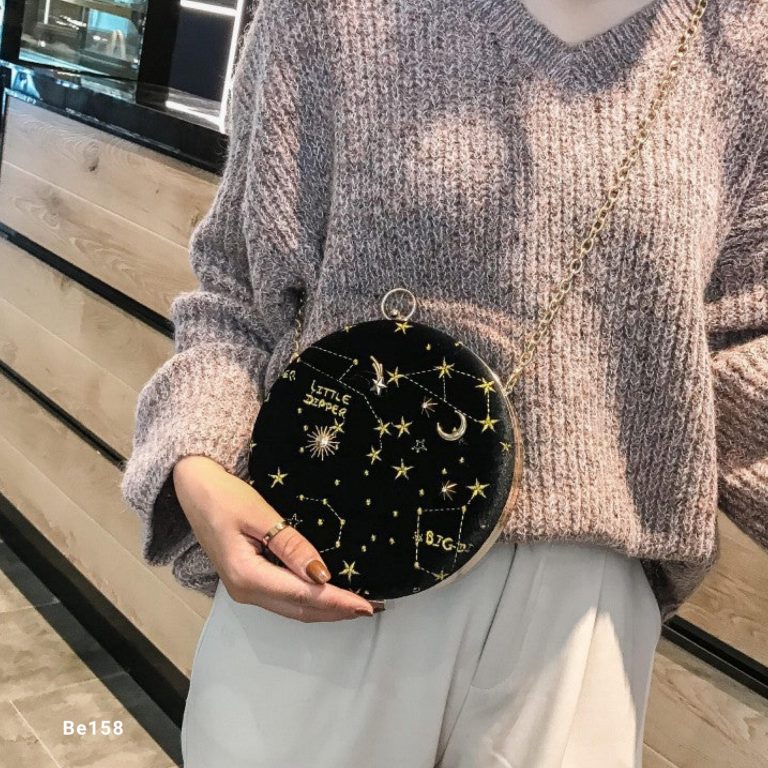 Bolso negro redondo apliques dorados circunferencia 18cm BAG23 C-B